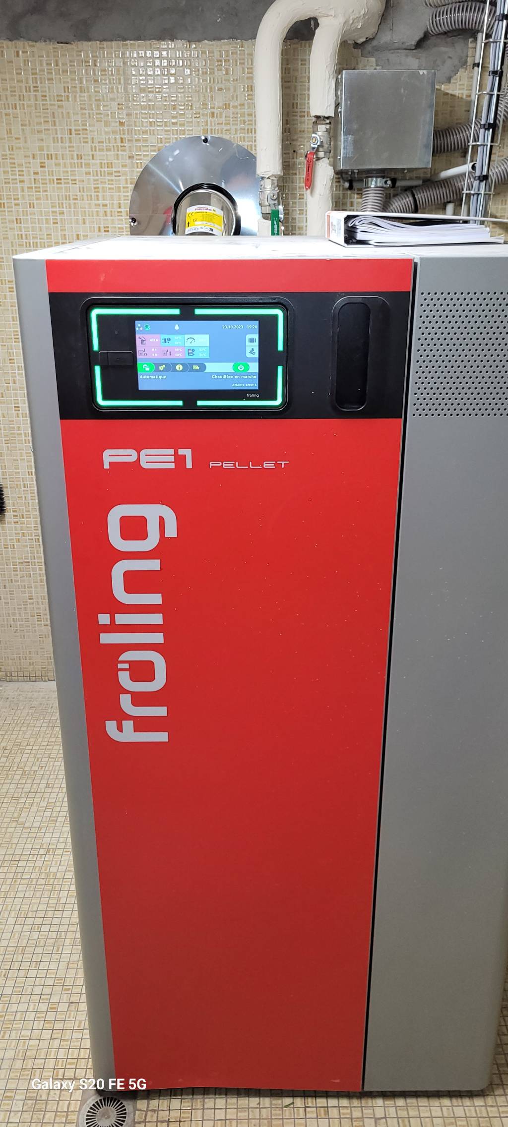 - Cette chaudière biomasse FROLING Pellet 35 assure le chauffage seul avec un ballon tampon de 850L