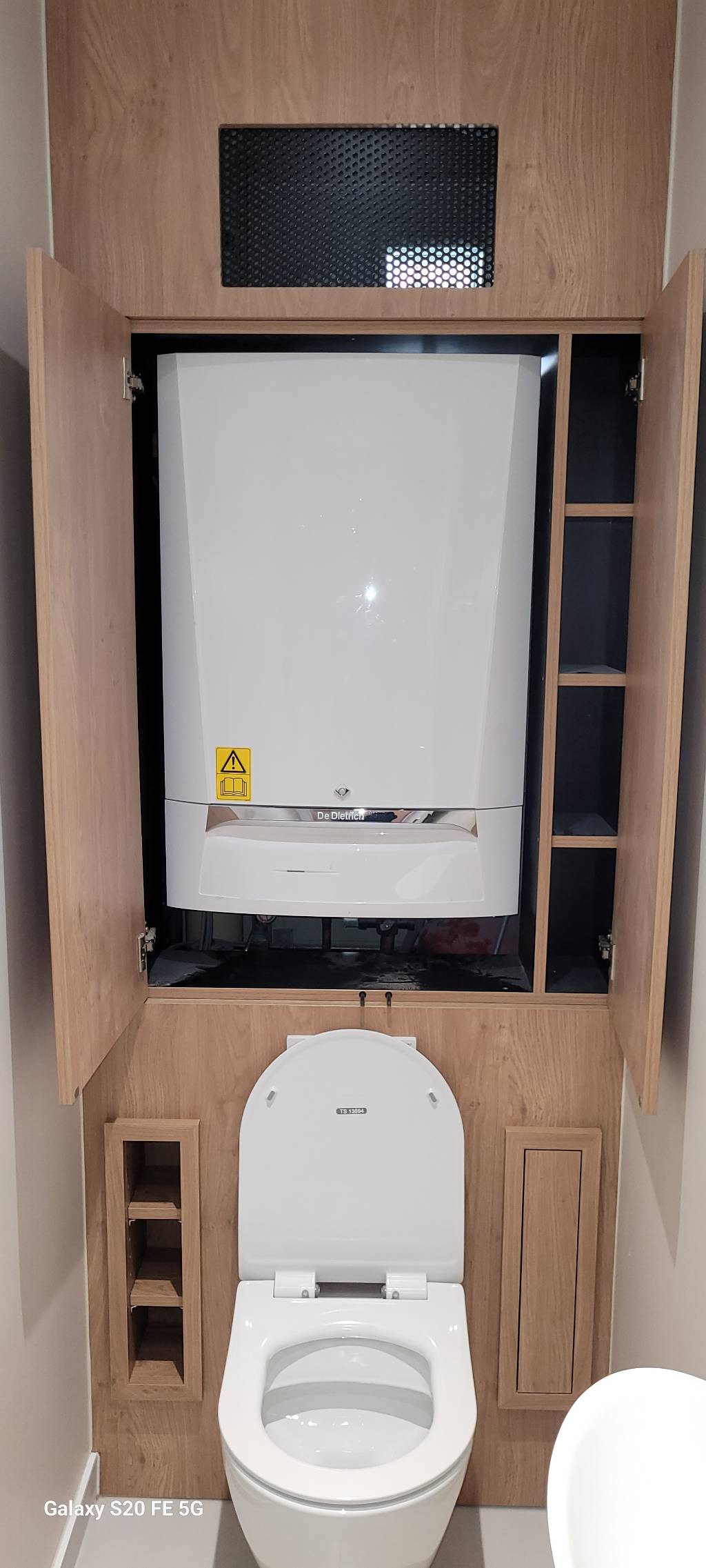 - Intégration de la chaudière dans un placard à la charge du menuisier