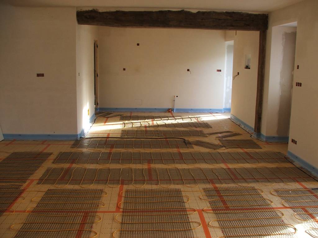 Rénovation d'une maison d'habitation, installation d'un plancher chauffant électrique