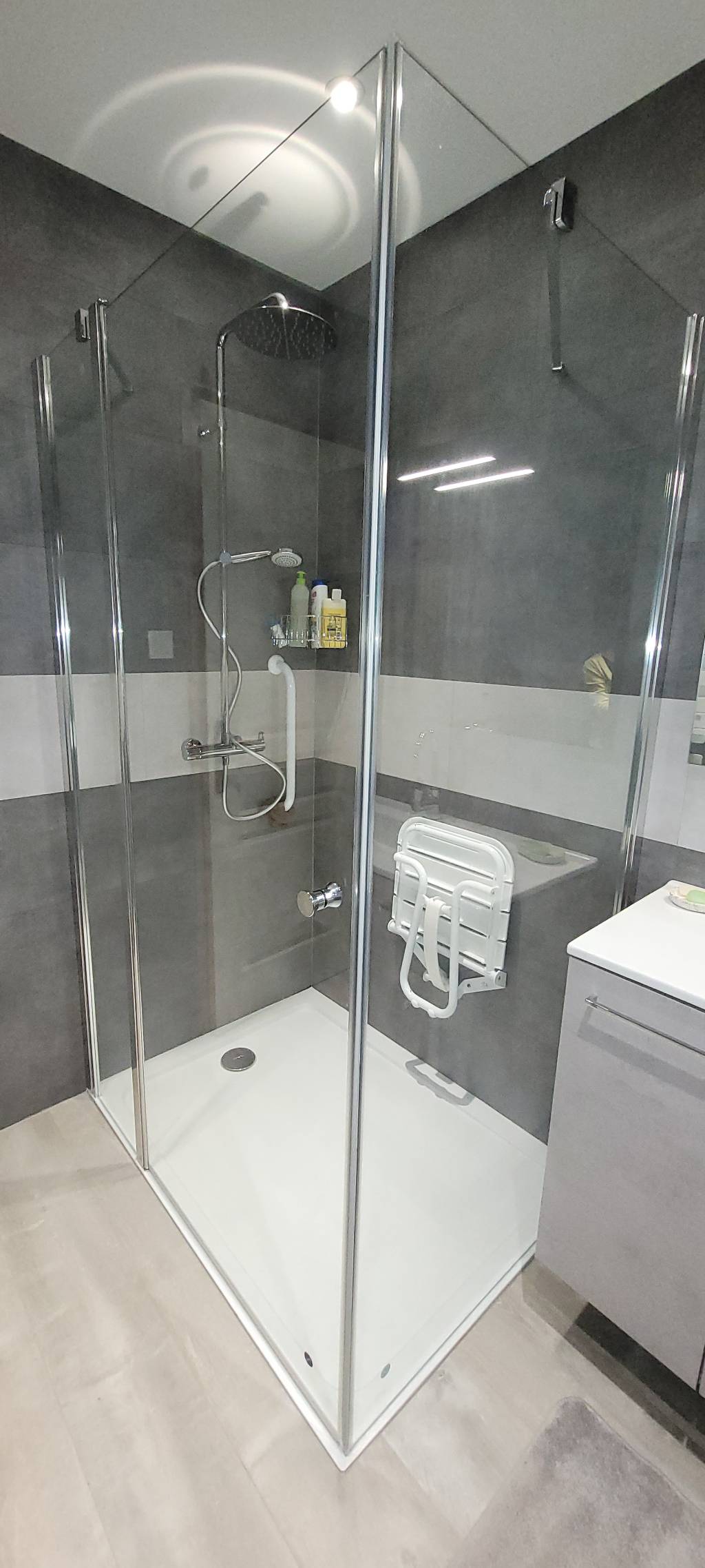 Installation d'un receveur de douche antidérapant 1m20 x 0m90 JACOB DELAFON avec sa paroi de douche RONAL avec accès de face