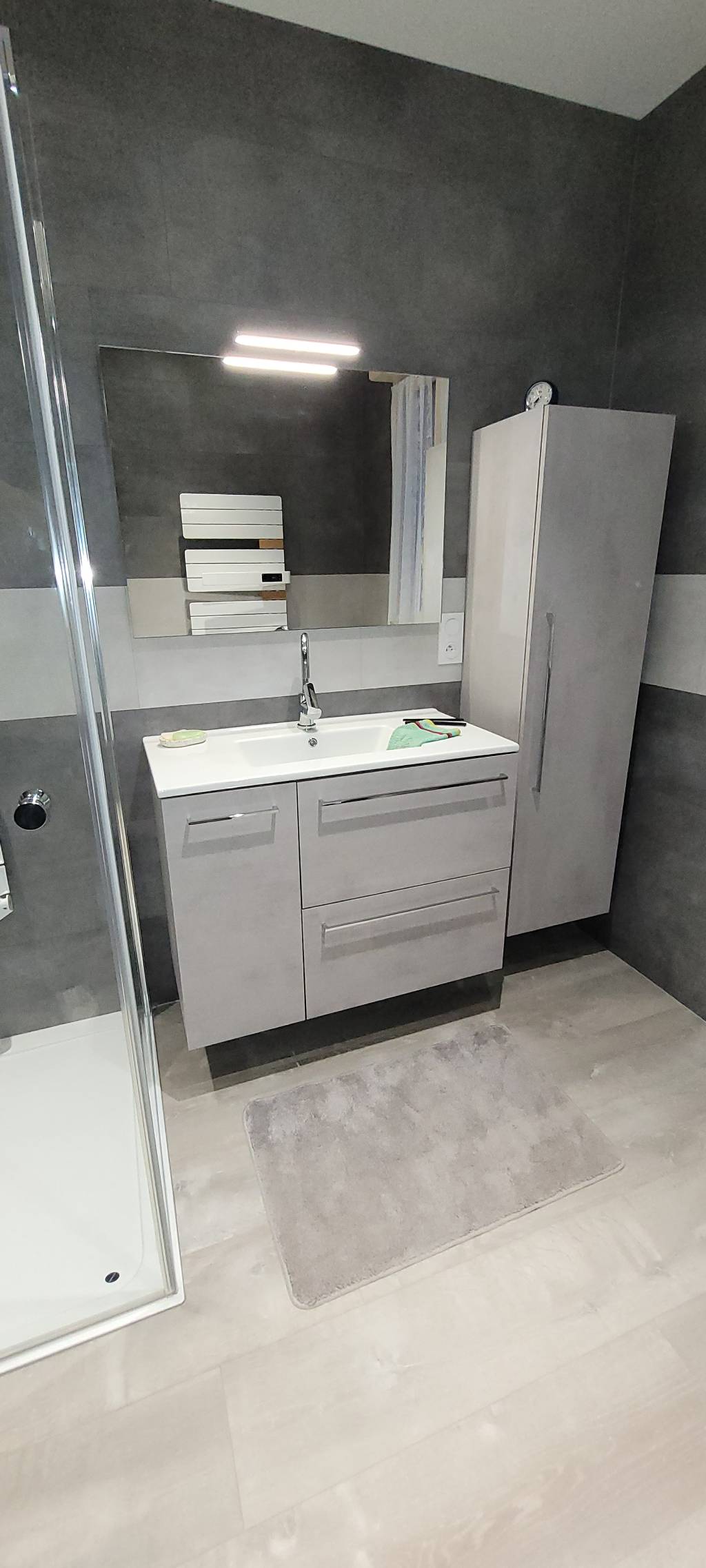 Relooking complet d'une salle de bain avec baignoire dans un pavillon de Brécey dans la Manche (50)